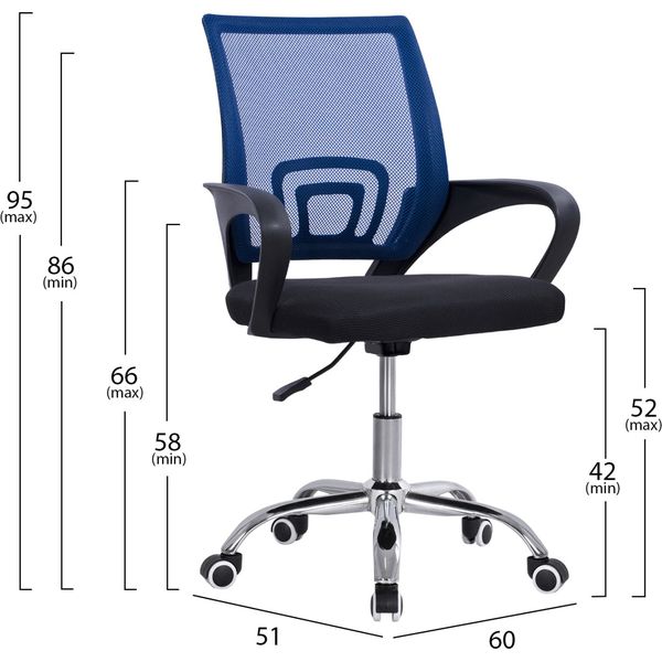 ΚΑΡΕΚΛΑ ΓΡΑΦΕΙΟΥ BRISTONE HM1058.36 ΜΠΛΕ MESH-ΠΟΔΙ ΧΡΩΜΙΟΥ-ΜΑΥΡΑ ΜΠΡΑΤΣΑ 60X51X95ΥΕΚ (PER.258235)