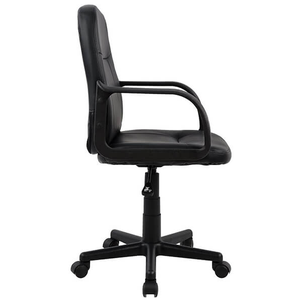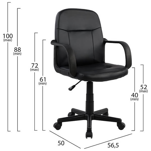 Καρέκλα γραφείου από PU με χαμηλή πλάτη, σε μαύρο χρώμα. -Χάρη στα μεγάλα μπράτσα της καρέκλας, το τμήμα του βραχίονα, από τους ώμους μέχρι τους αγκώνες, παραμένει ξεκούραστο και υποστηρίζεται πλήρως, ακόμα και μετά από πολλές ώρες απαιτητικής δουλειάς. -Λιτό design για να ταιριάζει σε όλους τους χώρους. -Η καρέκλα διατίθεται σε πακέτο με αναλυτικές οδηγίες συναρμολόγησης. Χαρακτηριστικά: Διαστάσεις: 56.5 x 50 x 88-100 εκ.Ύψος καθίσματος: 40 εκ./52 εκ.Ύψος μπράτσων: 61 εκ./72 εκ.Διαστάσεις καθίσματος: 16 x 44 εκ.Χρώμα: Μαύρο.Εγγύηση: 2 χρόνια. DOA 7 ημερών