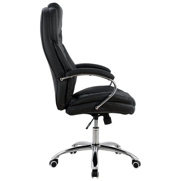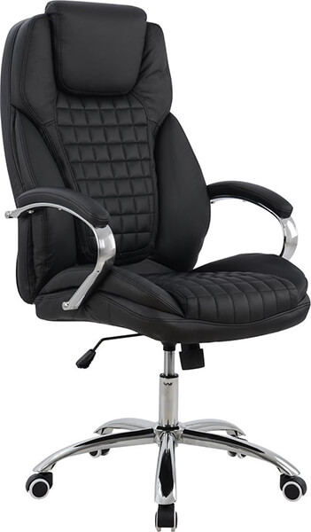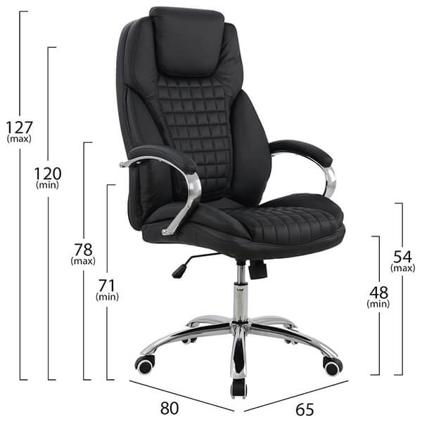 Καρέκλα γραφείου διευθυντική με μπράτσα και ανάκλιση. -Από υψηλής ποιότητας PU σε μαύρο χρώμα και μοναδικό design. -Μπράτσα και βάση μεταλλικά ενισχυμένα βαρέως τύπου επιχρωμιωμένα και ενισχυμένα ροδακια. -Κάθισμα και πλάτη με ανατομικά μαξιλαράκια στήριξης. -Ιδανική για αυτούς που κάθονται αρκετές ώρες μπροστά στον υπολογιστή. Χαρακτηριστικά: Διαστάσεις: 65 x 80 x 120-127 εκ.Ύψος καθίσματος: 48 εκ./54 εκ.Ύψος μπράτσων: 71 εκ./78 εκ.Διαστάσεις καθίσματος: 55 x 54 εκ.Χρώμα: Μαύρο.Εγγύηση: 2 χρόνια. DOA 7 ημερών