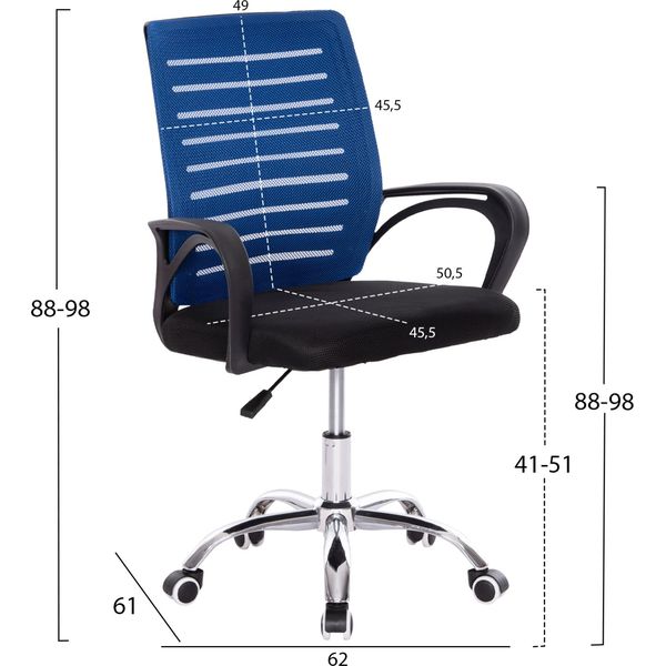 ΚΑΡΕΚΛΑ ΓΡΑΦΕΙΟΥ TRAIL HM1192.36 ΜΠΛΕ & ΜΑΥΡΟ MESH-ΠΟΔΙ ΧΡΩΜΙΟΥ 62X51X98ΥΕΚ.