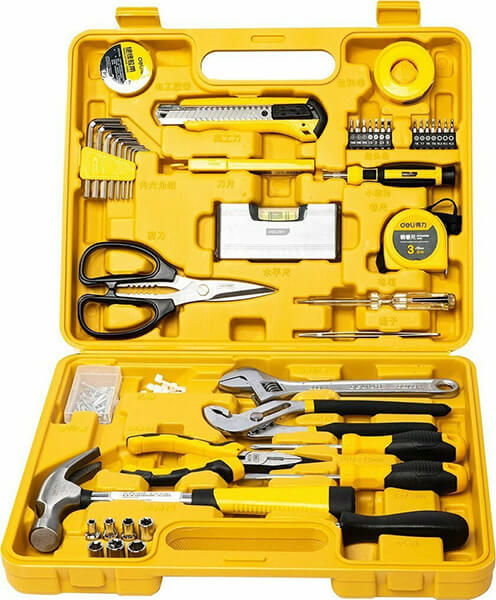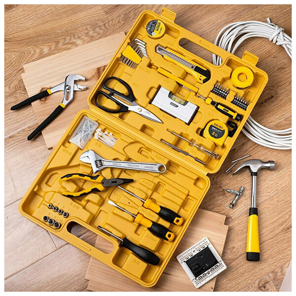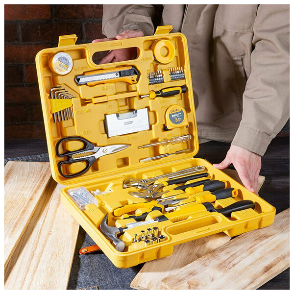 Σετ εργαλείων σε βαλίτσα μεταφοράς για κάθε είδους εγκατάσταση στο σπίτι, βολικά και γρήγορα. Περιεχόμενα: -1 x Στυλό δοκιμής. -1 x Μονωτική ταινία. -1 x 3 m. Μέτρο -1 x Ψαλίδι. -1 x Καλώδια. -1 x Teflon ταινία. -1 x Τσιμπιδάκι με λεπτή μύτη. -1 x 4mm spinner handle. -1 x Αλφάδι 100m. -1 x 160mm πένσα με μακριά μύτη (8"). -1 x 200mm (8") γαλλικό κλειδί. -1 x 200 mm (8") πένσα αντλίας νερού. -2 x 4mm bit drive 7PC. -1 x Κατσαβίδι με σχισμές 5x75mm. -1 x Philips κατσαβίδι PH1x75mm. -1 x 18mm πρακτικό μαχαίρι με πλαστική λαβή. -1 x 18mm λεπίδα μαχαιριού (10 pc). -1 x 0.25kg σφυρί με ατσάλινη λαβή. -1x Θήκη οργάνωσης εργαλείων. -1x 8-piece hex κλειδιά (1.5, 2, 2.5, 3, 4, 5, 5.5, 6mm). -1x 6.3mm hex υποδοχές (4mm, 5mm, 6mm, 7mm, 8mm, 9mm, 10mm). Τεμάχια: 48 τμχ.Εγγύηση: 2 χρόνια.