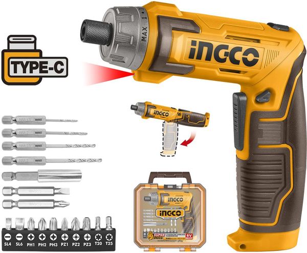 katsabidi mpatarias 8v li ion me ensomatomeni mpataria usb type c set 17tem 6nm ingco csdli08025 photo
