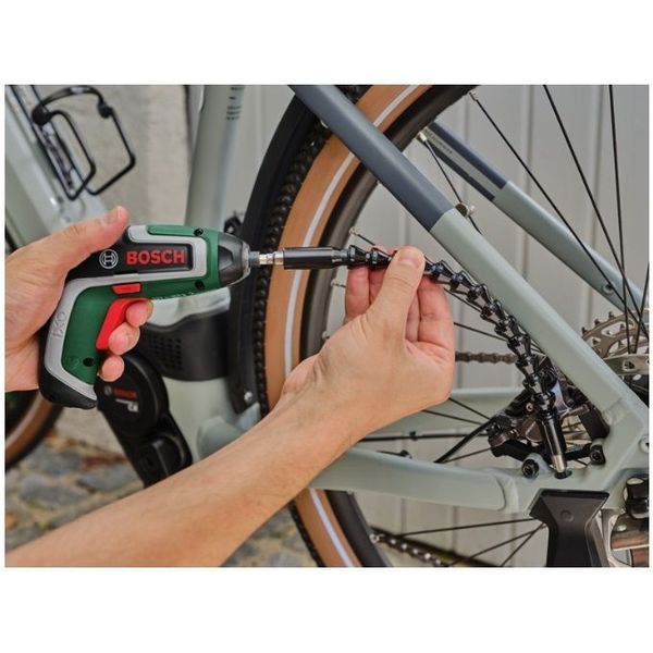 Το κατσαβίδι μπαταρίας Bosch IXO 7 Flexi Set (06039E000A) είναι ένας ευέλικτος και πρακτικός σύντροφος εργασίας για κάθε χρήστη. Με περιστρεφόμενο σώμα τύπου Flexi, επιτρέπει εύκολη πρόσβαση σε στενά σημεία, ενώ η ισχυρή μπαταρία ιόντων λιθίου και η σειρά μύτες που περιλαμβάνονται εξασφαλίζουν ότι θα είστε έτοιμοι για κάθε καθημερινή εργασία. - Σχεδίαση Flexi με περιστροφικό άξονα για εύκολη πρόσβαση σε δύσκολες γωνίες. - Περιλαμβάνει σετ μύτες και αντάπτορα για διάφορα είδη βιδωμάτων. - Μπαταρία ιόντων λιθίου για σταθερή απόδοση χωρίς φαινόμενο μνήμης ή αυτοεκφόρτιση της μπαταρίας. - Φωτισμός για εργασία σε σκοτεινές περιοχές με τον δακτύλιο φωτός LED 360°. - Χειρισμός με ένα χέρι ελαφρύ και εργονομικό. Τεχνικά Χαρακτηριστικά: Ονομαστικές στροφές: 235 min-1.Μέγιστη ροπή στρέψης, μαλακό βίδωμα: 3 Nm.Μέγιστη ροπή στρέψης, σκληρό βίδωμα: 5,5 Nm.Τσοκ: Μαγνητικός φορέας κατσαβιδόλαμων με εξάγωνο στέλεχος.Διάμετρος βιδών: έως 5 mm.Τάση μπαταρίας: 3.6 V.Χωρητικότητα μπαταρίας: 2.0 Ah.Διάρκεια φόρτισης: 3 ώρες.Διαστάσεις εργαλείου (ΜxΠxΥ): 147 x 46 x 120 mm.Βάρος: 0,320 kg.Αξεσουάρ στη συσκευασία: Ευέλικτη προέκτραση 300mm, 10 κατσαβιδόλαμες, καλώδιο micro USB.Εγγύηση: 2 χρόνια.