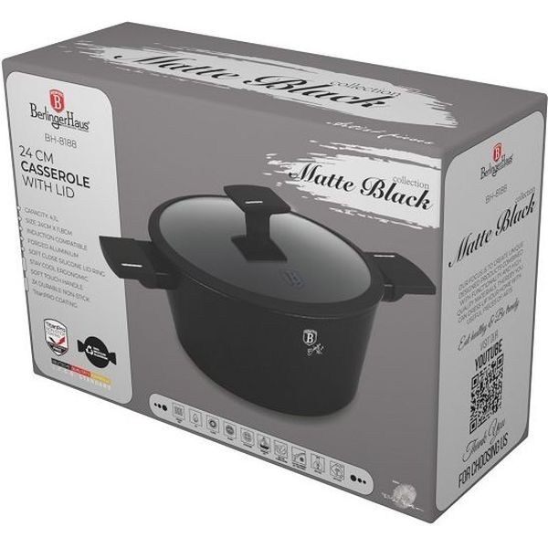 ΚΑΤΣΑΡΟΛΑ ΜΕ ΚΑΠΑΚΙ 24CM BERLINGER HAUS BH8188 ΜΑΥΡΟ ΜΑΤ HAP.177486 BERLINGER HAUS BERLINGER HAUS HOME APPLIANCES