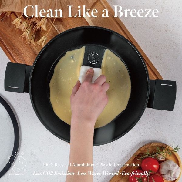 • Υλικό: Αλουμίνιο – ελαφρύ, ανθεκτικό στη σκουριά και γρήγορο στο ζέσταμα.