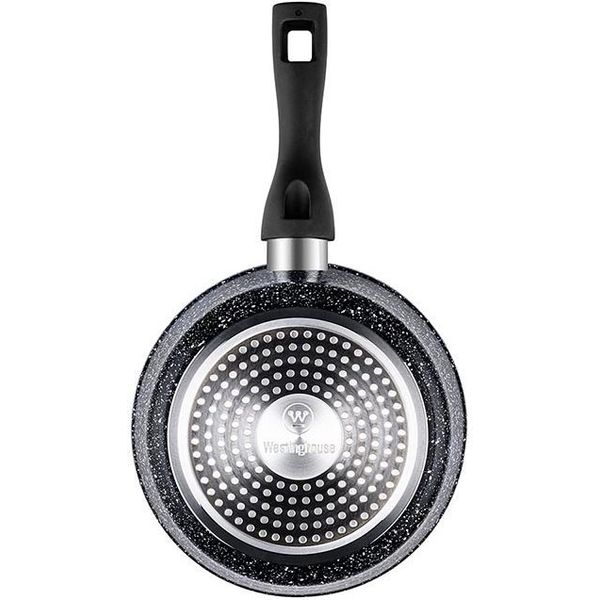 Αντικολλητική γαλατιέρα/saucepan με γυάλινο καπάκι (1.7 Lt) Black Marble Series από την Westinghouse! Χάρη στην διπλή επίστρωση μαύρου μαρμάρου, είναι ιδανική για την εκτέλεση συνταγών για σούπες, σως, κρέμες ή ρύζι, ενώ υπόσχεται εύκολο καθάρισμα στο χέρι ή στο πλυντήριο πιάτων. Παράλληλα, είναι συμβατή με όλους τους τύπων εστιών, ενώ το κομψό, high-end design της γαλατιέρας/saucepan, σε συνδυασμό με την μοναδική συσκευασία της.