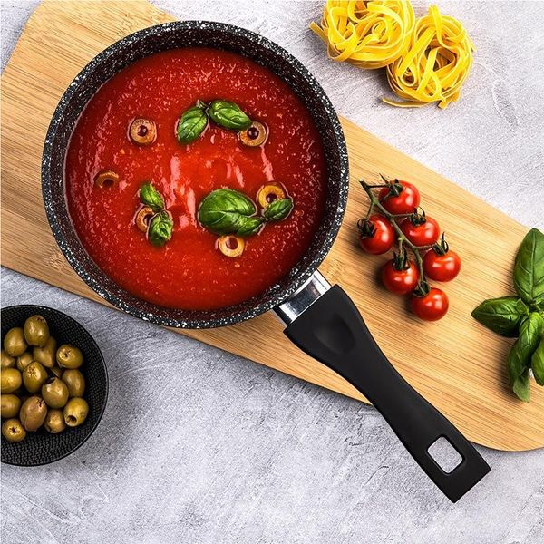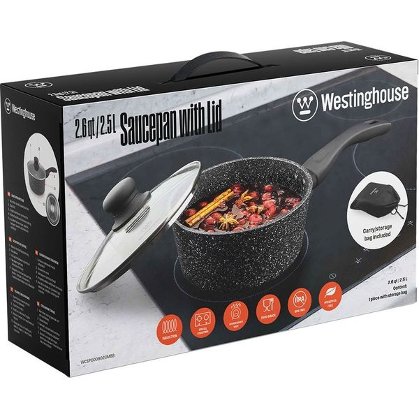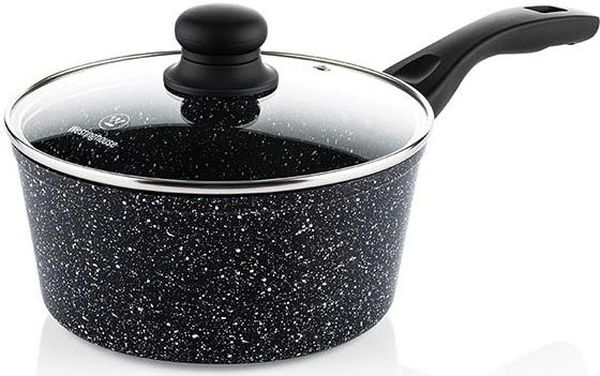 Αντικολλητική γαλατιέρα/saucepan με γυάλινο καπάκι (2.5 Lt) Black Marble Series από την Westinghouse! Χάρη στην διπλή επίστρωση μαύρου μαρμάρου, είναι ιδανική για την εκτέλεση συνταγών για σούπες, σως, κρέμες ή ρύζι, ενώ υπόσχεται εύκολο καθάρισμα στο χέρι ή στο πλυντήριο πιάτων. Παράλληλα, είναι συμβατή με όλους τους τύπων εστιών, ενώ το κομψό, high-end design της γαλατιέρας/saucepan, σε συνδυασμό με την μοναδική συσκευασία της.