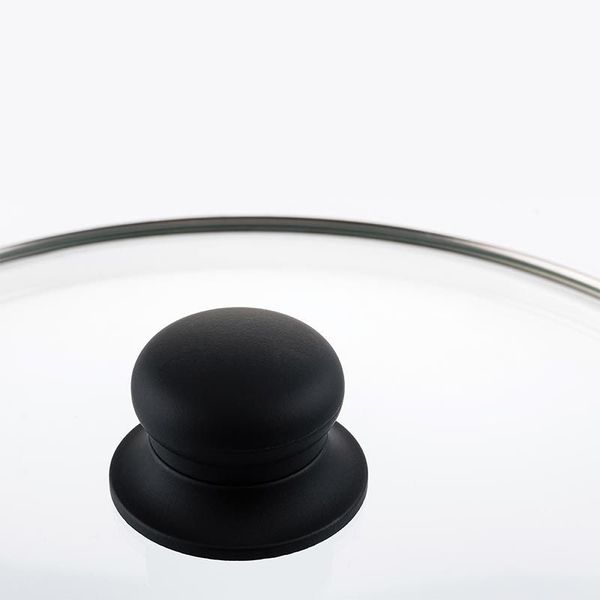 Χερούλι καπακιού: Βιδωτός βακελίτης με επίστρωση μαύρης σιλικόνης για καλύτερο κράτημα και προστασία από τη θερμότητα.