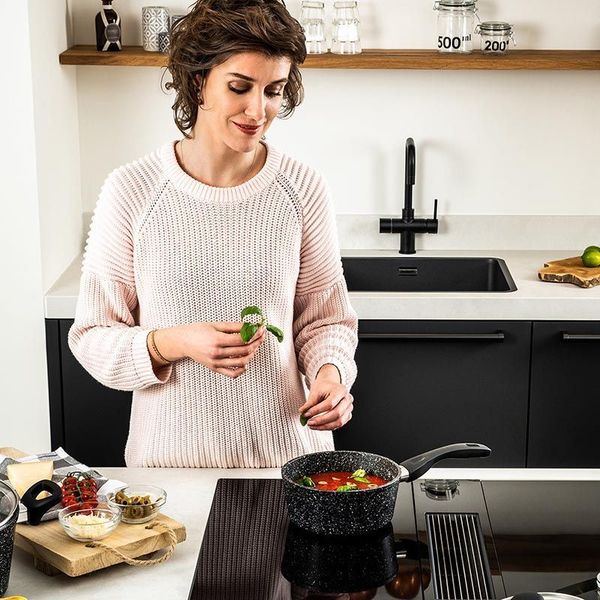 - Διπλή αντικολλητική επίστρωση PFLUON COOKMARK (μαύρο μάρμαρο) για υγιεινό μαγείρεμα, αντοχή στη θερμότητα, ενώ επίσης είναι φιλική προς τον χρήστη και το περιβάλλον.