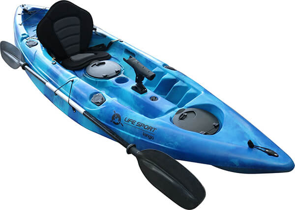 Το Kayak "Lango" της Life Sport είναι ιδανικό για γυμναστική με ώρες κωπηλασίας, αλλά και διασκέδαση με ψάρεμα και βόλτα! Είναι κατασκευασμένο από ειδικό πλαστικό LLDPE, έχει πιο άνετες διαστάσεις 295x80cm και διαθέτει φίλτρα απορρόφησης της υπεριώδους ακτινοβολίας για μεγαλύτερη αντοχή στο χρόνο και τις περιβαλλοντικές συνθήκες. Θα βρείτε 2 στεγανές καταπακτές για να αποθηκεύσετε τα προσωπικά σας αντικείμενα, 4 σταθερές καλαμοθήκες, D-rings για εφαρμογή καθίσματος και σταθερή ποτηροθήκη για το αναψυκτικό σας. Τύπος Kayak: Sit on Top.Χωρητικότητα: 1 ενήλικος.Υλικό: LLDPE.Ανθεκτικότητα στην υπεριώδη ακτινοβολία: Ναι, Anti-UV: 8.Κρίκοι τύπου "D": Ναι.Ελαστικό κορδόνι συγκράτησης: Ναι.Τάπες αποστράγγισης υδάτων: 7.Σταθερές καλαμοθήκες: 4.Στεγανές καταπακτές αντικειμένων: 2.Σταθερή ποτηροθήκη: 1.Υποδοχή για τοποθέτηση βάσης καλαμιού: Ναι.Υποδοχή στο κάτω μέρος του kayak για ανιχνευτή ψαριών: Ναι.Χρώμα: Μπλε Σκούρο/Γαλάζιο.Διαστάσεις: 295 x 80 x 38 cm.Καθαρό βάρος: 22 kg.Μέγιστο φορτίο: 150 kg.Πιστοποίηση: CE.Εγγύηση: 2 χρόνια.