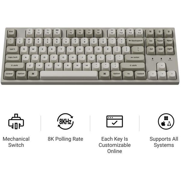 keychron c1 pro c1px m3 qmk via mechanical brown sw 8k polling rate hot swap 80 us retro rgb photo