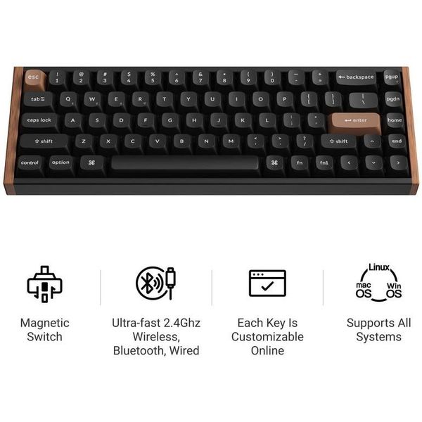 KEYCHRON K6 HE (K6H-F1) SPECIAL WOOD EDITION WIRELESS MAGNETIC HALL EFFECT RGB KEYBOARD 65% US