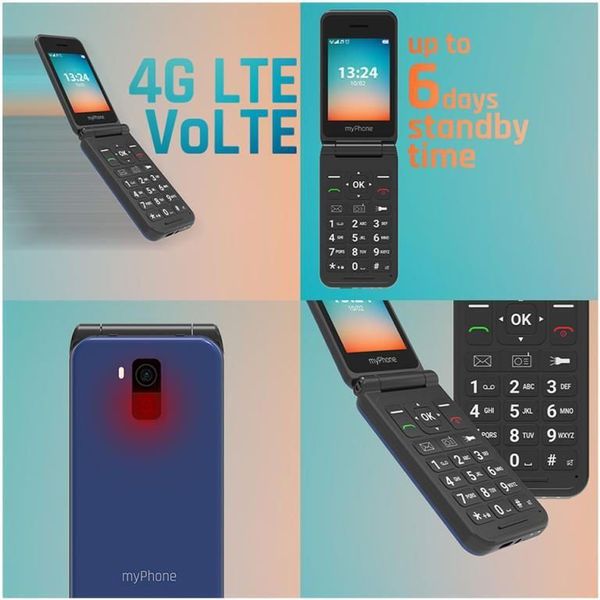 Το myPhone FLIP LTE είναι ένα πρακτικό κινητό τηλέφωνο τύπου clamshell (flip), σχεδιασμένο για απλή καθημερινή χρήση και αξιόπιστη επικοινωνία. Διαθέτει υποστήριξη δικτύου 4G με τεχνολογία VoLTE για καθαρές κλήσεις, μεγάλη και ευανάγνωστη οθόνη 2.8 ιντσών, λειτουργία Dual SIM, κουμπί SOS για καταστάσεις ανάγκης και μπαταρία 1000 mAh που προσφέρει έως και αρκετές ημέρες λειτουργίας με μία μόνο φόρτιση. Ο πρακτικός σχεδιασμός αναδιπλούμενου τηλεφώνου προστατεύει την οθόνη και το πληκτρολόγιο, ενώ το μικρό μέγεθος επιτρέπει εύκολη μεταφορά σε τσέπη ή τσάντα.