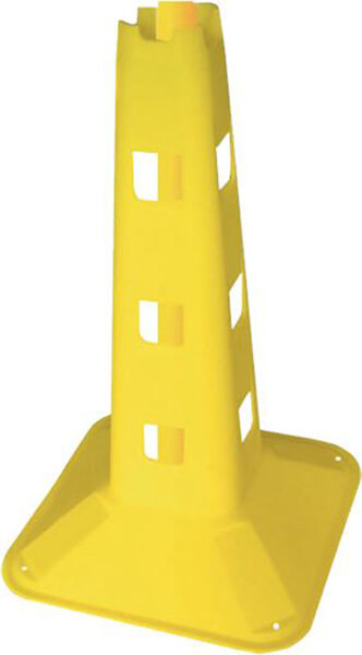 Κώνος με 12 τρύπες για τοποθέτηση στύλου σε 4 διαφορετικά ύψη: 9.5/17/24.5/32 cm. Με τρύπα στην κορυφή για κάθετη τοποθέτηση στύλου και 4 τρύπες για στερέωση στο έδαφος. • Υψος: 32 cm. • Χρώμα: Κίτρινο. • Υλικό: PVC. • Εγγύηση: 2 χρόνια.