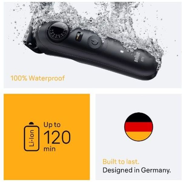 Κατασκευασμένο για να διαρκεί 100% αδιάβροχο τρίμερ για άνδρες με μπαταρία ιόντων λιθίου μεγάλης διάρκειας και έως 120 λεπτά ασύρματης λειτουργίας.