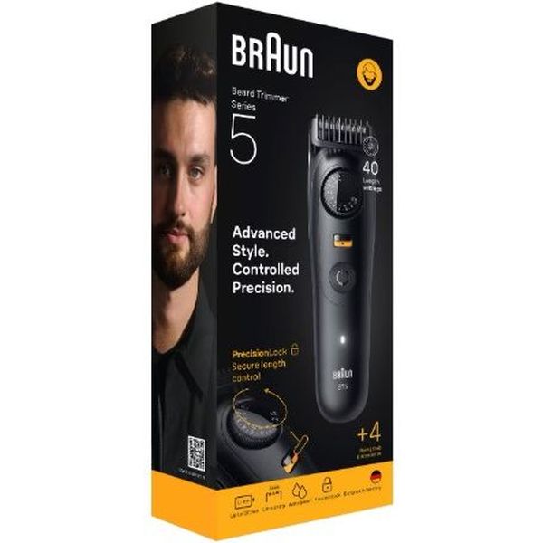Προηγμένο στυλ και ελεγχόμενη ακρίβεια. Το τρίμερ για γένια της Braun, σειρά 5, προσφέρει άψογο έλεγχο του στυλ στα χέρια σας.