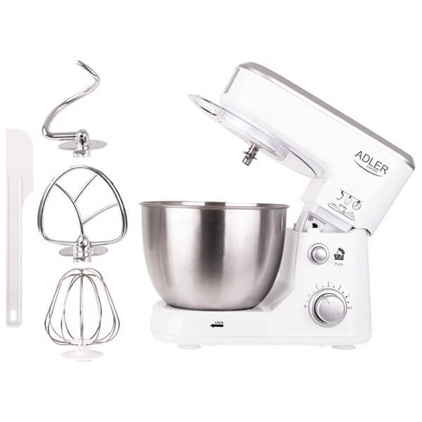 Η κουζινομηχανή, από την εταιρία Adler, διαθέτει ισχύ 1000 W, που σας επιτρέπει να χτυπάτε, να ανακατεύετε και να ζυμώνετε σε πολύ μικρό χρονικό διάστημα. Μπορείτε να ρυθμίσετε την ταχύτητα ανάμεσα σε 6 επίπεδα και περιλαμβάνει κάδο από ανοξείδωτο ατσάλι χωρητικότητας 4 Lt, για κάθε ανάμειξη, έτσι ώστε να είστε σε θέση να προετοιμάσετε με άνεση ακόμα και μεγάλες ποσότητες φαγητού. -Τα 3 διαφορετικά εξαρτήματα με πλανητική κίνηση, που συνοδεύουν την κουζινομηχανή, θα σας επιτρέψουν να την εκμεταλλευτείτε σε κάθε παρασκευή φαγητού. Το χτυπητήρι - σύρμα θα αναμίξει ιδανικά το μείγμα σας, ο γάντζος είναι ιδανικός για τις ζύμες σας και ο αναδευτήρας, ζυμώνει τις πιο μαλακές ζύμες (μπισκότα, κέικ, τάρτες) και ομογενοποιεί μείγματα χωρίς να δίνει όγκο. -Η κουζινομηχανή, είναι εξοπλισμένη με διάφανο καπάκι με άνοιγμα, για να σας προστατεύει από το πιτσίλισμα, αλλά και να μπορείτε ταυτόχρονα να προσθέτετε τα υλικά της αρεσκείας σας εύκολα. -Ο βραχίονας έχει κλίση προς έξω για εύκολο χειρισμό και για να σας διευκολύνει στην αλλαγή των εξαρτημάτων. -Οι βεντούζες στα πόδια, προσδίδουν μέγιστη σταθερότητα, ενώ όλα τα αξεσουάρ μπορούν να πλυθούν με νερό και απορρυπαντικό πιάτων. Ωστόσο, τα εξωτερικά μέρη και το σώμα της κουζινομηχανής, μπορούν να καθαριστούν με μια πετσέτα κουζίνας ή ένα μαλακό πανί. Χωρητικότητα κάδου: 4.0 Lt.Υλικό κάδου: Ανοξείδωτος.Εξαρτήματα:: χτυπητήρι, γάντζος, αναδευτήρας.Ισχύς: 1000 W.Επίπεδα ταχύτητας: 6.Τροφοδοσία: 220-240V / 50-60Hz.Xρώμα: Λευκό.Εγγύηση: 2 χρόνια.