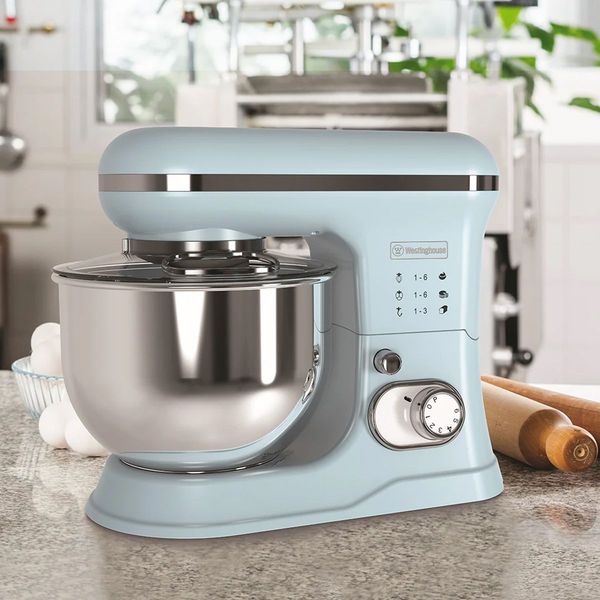 Westinghouse Retro Stand Mixer με χωρητικότητα 5L, ισχύ 1200 W και εντυπωσιακό ρετρό σχεδιασμό για απόλυτη ευελιξία στην κουζίνα. Διαθέτει κάδο 5 λίτρων από ανοξείδωτο ατσάλι, 6 ταχύτητες με λειτουργία Pulse και τρία εξαρτήματα (άγκιστρο ζύμης, αναδευτήρας και αυγοδάρτης) που καλύπτουν κάθε ανάγκη: από ανάμειξη και ζύμωμα μέχρι χτύπημα κρέμας και αφράτων μειγμάτων. Διαθέτει διαφανές καπάκι για προστασία από πιτσιλίσματα, αντιολισθητική βάση για σταθερότητα, καθώς και προστασία από υπερθέρμανση για μέγιστη ασφάλεια σε κάθε χρήση. Η λειτουργία Eject διευκολύνει την αλλαγή των εξαρτημάτων, κάνοντας την προετοιμασία συνταγών πιο πρακτική και απολαυστική.