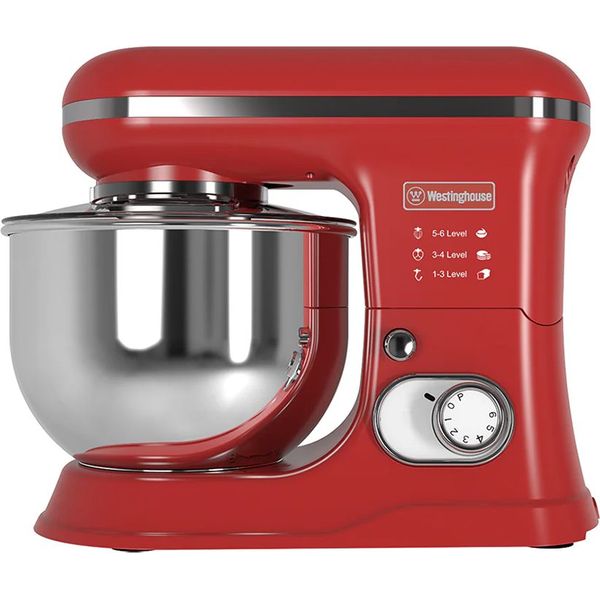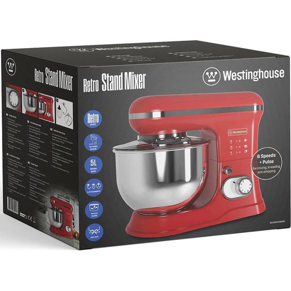 Westinghouse Retro Stand Mixer με χωρητικότητα 5L, ισχύ 1200 W και εντυπωσιακό ρετρό σχεδιασμό για απόλυτη ευελιξία στην κουζίνα. Διαθέτει κάδο 5 λίτρων από ανοξείδωτο ατσάλι, 6 ταχύτητες με λειτουργία Pulse και τρία εξαρτήματα (άγκιστρο ζύμης, αναδευτήρας και αυγοδάρτης) που καλύπτουν κάθε ανάγκη: από ανάμειξη και ζύμωμα μέχρι χτύπημα κρέμας και αφράτων μειγμάτων. Διαθέτει διαφανές καπάκι για προστασία από πιτσιλίσματα, αντιολισθητική βάση για σταθερότητα, καθώς και προστασία από υπερθέρμανση για μέγιστη ασφάλεια σε κάθε χρήση. Η λειτουργία Eject διευκολύνει την αλλαγή των εξαρτημάτων, κάνοντας την προετοιμασία συνταγών πιο πρακτική και απολαυστική.