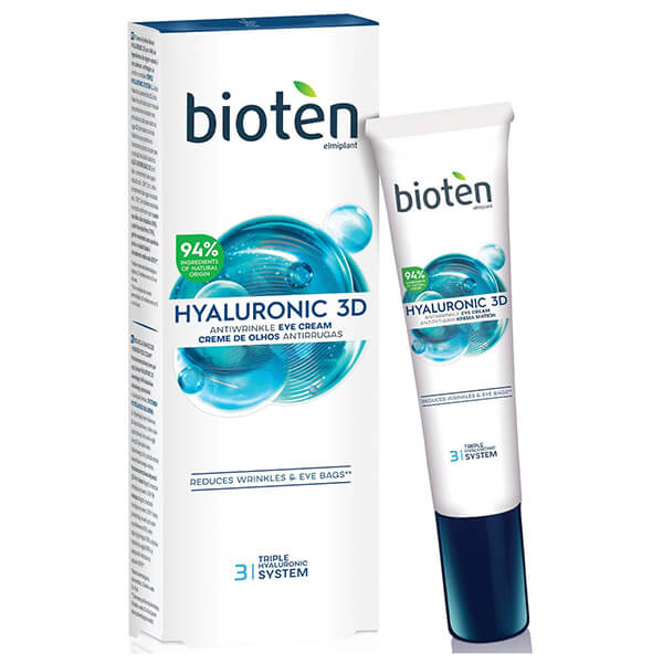 Η νέα σειρά περιποίησης προσώπου bioten HYALURONIC 3D, μία ισχυρή αντιρυτιδική σειρά, που είναι σχεδιασμένη να προσφέρει εντατική ενυδάτωση με άμεση και μακροχρόνια δράση, χάρη στο τριπλό σύστημα υαλουρονικού οξέως. Γεμίζει τοπικά την επιδερμίδα λειαίνοντας την επιφάνειά της αμέσως μετά την εφαρμογή. Διεισδύει ακόμα και στα βαθύτερα στρώματα της επιδερμίδας και βοηθά ορατά στη μείωση των λεπτών γραμμών και των ρυτίδων βελτιώνοντας την ελαστικότητά της για μια πιο υγιή, νεότερη και λαμπερή όψη. Βοηθά στην αποκατάσταση του βέλτιστου επίπεδου Υαλουρονικού Οξέως διεγείροντας τη φυσική σύνθεση και ανανέωσή του, με αποτέλεσμα η επιδερμίδα να ενυδατώνεται εντατικά, το δέρμα να γίνεται πιο ανθεκτικό και σφριγηλό και οι ρυτίδες να μειώνονται.