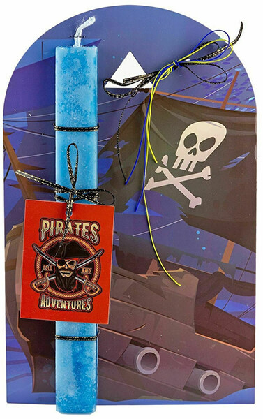 Πασχαλινή λαμπάδα σε μπλε χρώμα με πλαίσιο πειρατής.