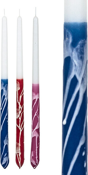 Πασχαλινή λαμπάδα μισοβαμμένη, με τυχαίο χρωματικό σχέδιο. Έχει μήκος 40 εκατοστών.