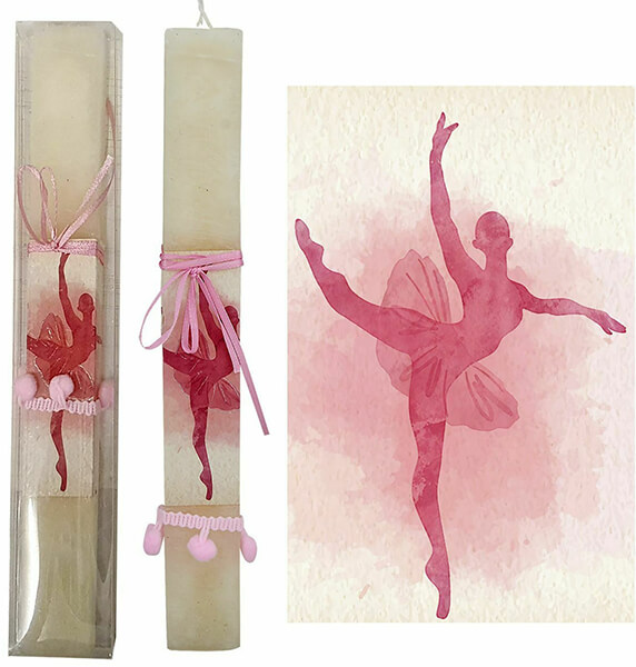 Πασχαλινή λαμπάδα πλακέ με σχέδιο μπαλαρίνα.