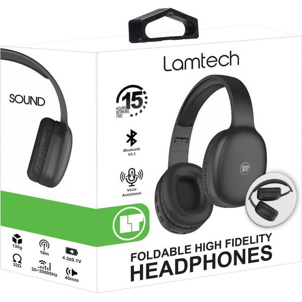 lamtech bt53 foldable high fidelity headphones black lam113003 photo