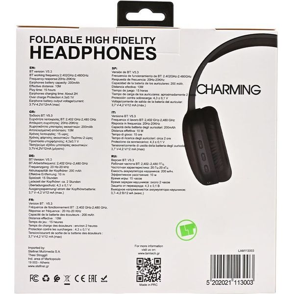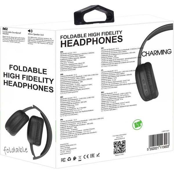 LAMTECH BT5.3 FOLDABLE HIGH FIDELITY HEADPHONES BLACK LAM113003 TEL.232245 LAMTECH LAMTECH BLUETOOTH HEADSET