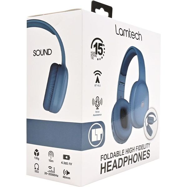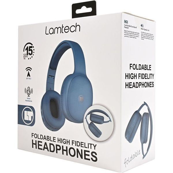 lamtech bt53 foldable high fidelity headphones blue lam113034 photo