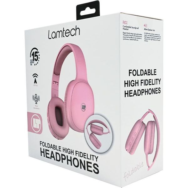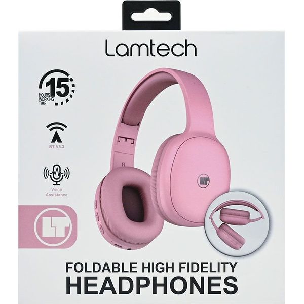 lamtech bt53 foldable high fidelity headphones pink lam113010 photo