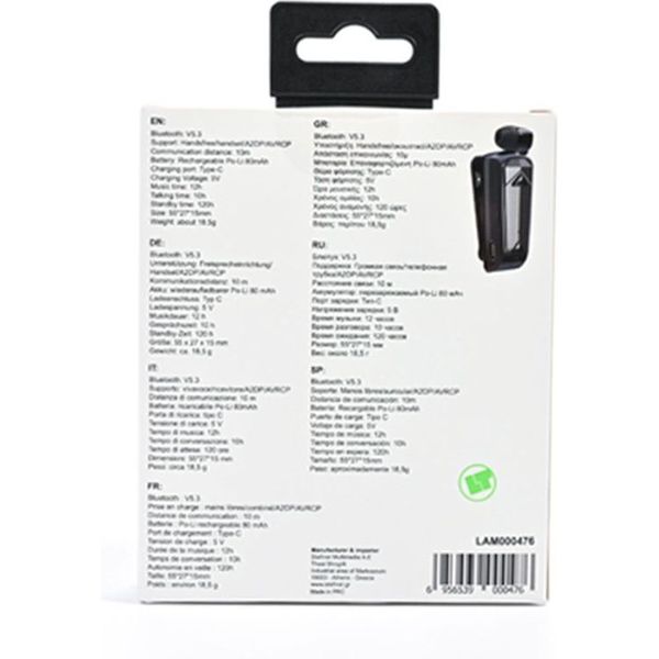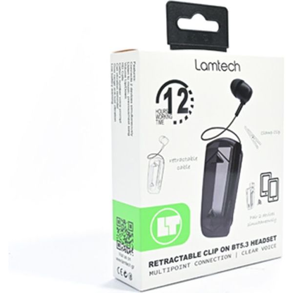 Συμπαγές και πρακτικό, το Lamtech Retractable BT 5.3 Clip-On Headset συνδυάζει λειτουργικότητα και άνεση για όσους χρειάζονται hands-free εμπειρία με αξιοπιστία και ποιότητα.