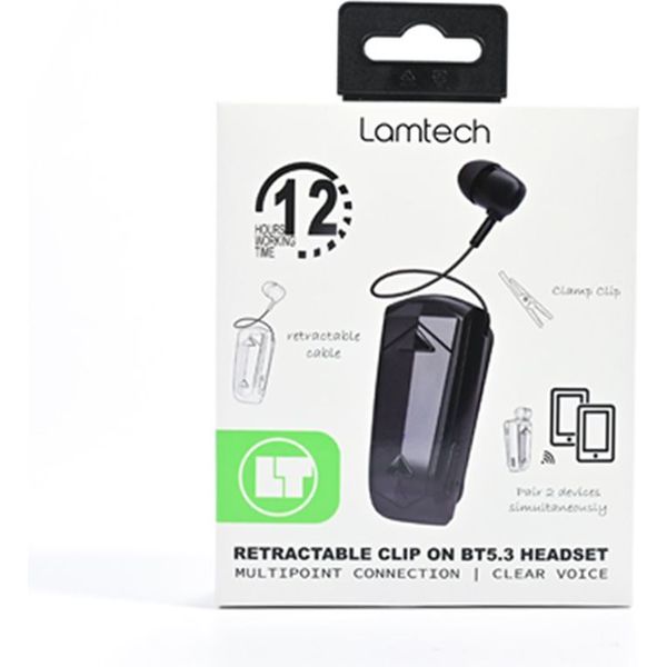 LAMTECH RETRACTABLE BT 5.3 CLIP ON HEADSET BLACK (HANGING CORD) LAM000476