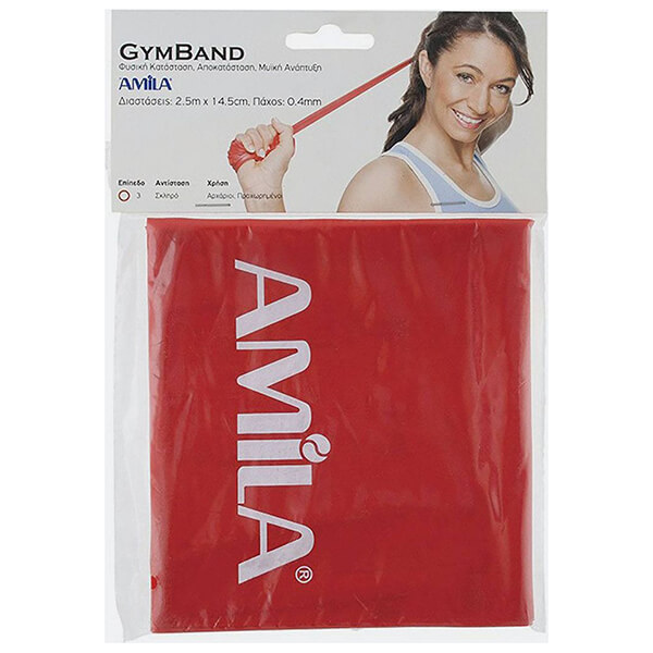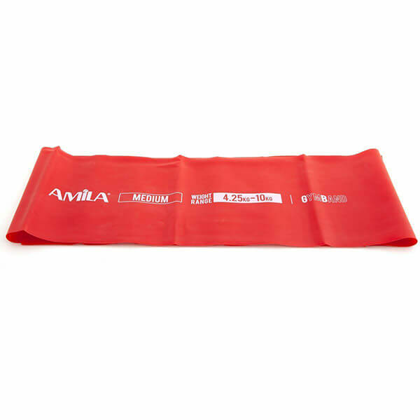Λάστιχο AMILA GymBand, μήκους 2.5 μέτρων για να μπορείτε να εκτελέσετε ένα πλήθος ασκήσεων. -Τα λάστιχα αντίστασης είναι μια εύκολη στη χρήση, αξιόπιστη και αποτελεσματική εναλλακτική λύση στα ελεύθερα βάρη και τα μηχανήματα βαρών. -Είναι φορητά και και μπορούν να χρησιμοποιηθούν στο σπίτι, σε κέντρα αποκατάστασης και σε χώρους εκγύμνασης. -Είναι διαθέσιμα σε διάφορες παραλλαγές γραμμικής αντίστασης και μήκους ώστε να μπορούν να καλύψουν όλες τις ανάγκες του αθλητή. Χαρακτηριστικά Υλικό: 100% Φυσικό latex.Σκληρότητα: Μεσαία.Πάχος Λάστιχου: 0.4 mm.Αντίσταση 200%: 4.65 Kg.Διαστάσεις: 250 x 145 cm.Χρώμα: Κόκκινο.Εγγύηση: 2 χρόνια.