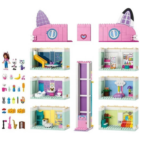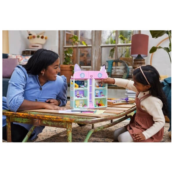 Τι θα κάνεις πρώτα στο Κουκλόσπιτο της Γκάμπι; Μπορείς να φτιάξεις μια τούρτα στην κουζίνα, να παίξεις στην τσουλήθρα στο play room, να γίνεις δημιουργικός στο δωμάτιο καλλιτεχνικών, να παίξεις πιάνο στο δωμάτιο μουσικής, να περιποιηθείς τον εαυτό σου στο μπάνιο, να πάρεις έναν υπνάκο στο υπνοδωμάτιο ή να πας στην ταράτσα για ένα πάρτι στην περιστρεφόμενη πίστα χορού. Υπάρχουν τόσα πολλά να ανακαλύψεις στο εντυπωσιακό κουκλόσπιτο της Γκάμπι που δεν θα θέλεις να φύγεις ποτέ!