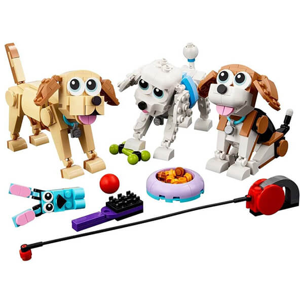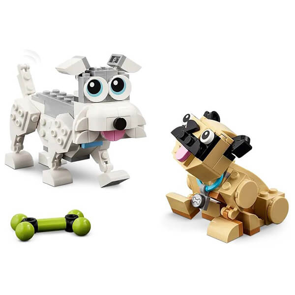 Αυτό είναι το απόλυτο σετ κατασκευής για τους λάτρεις των σκύλων! Κατασκεύασε ένα μπιγκλ, ένα κανίς ή ένα λαμπραντόρ για διασκεδαστικές βόλτες στο πάρκο με ένα μπαλάκι και ένα λουρί. Αργότερα, ανακατασκεύασέ τα σε ένα παιχνιδιάρικο μίνι σνάουζερ και ένα παγκ, ή μετάτρεψέ τα σε ένα χάσκι και ένα μακρύτριχο ντατσχάουντ. Η επιλογή είναι δική σου με αυτό το αξιαγάπητο 3 σε1 σετ .