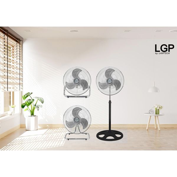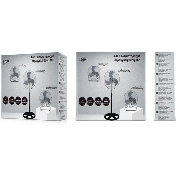 Ο LGP 3 σε 1 Round Base Fan 18” προσφέρει πρακτικότητα και απόδοση με μοτέρ αλουμινίου 45W για σταθερή λειτουργία.