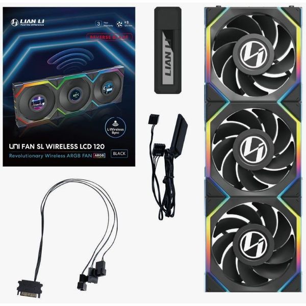 lian li unifan sl wireless lcd 120 3pcs reverse black triple pack include controller case fan extra photo 1  lian li unifan sl wireless lcd 120 3pcs reverse black triple pack include controller case fan extra photo 2  lian li unifan sl wireless lcd 120 3pcs reverse black triple pack include controller case fan extra photo 3