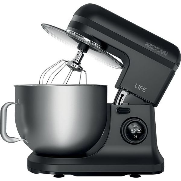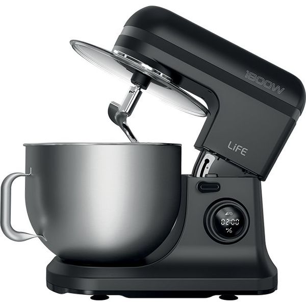 Η κουζινομηχανή LiFE BOSS 1800W 12L της σειράς Flat Black αποτελεί μια πανίσχυρη και εντυπωσιακή επιλογή για όσους αναζητούν κορυφαία απόδοση, μεγάλη χωρητικότητα και premium αισθητική στην κουζίνα. Ο μοντέρνος σχεδιασμός της σε ματ μαύρο χρώμα την καθιστά ιδανική για να ξεχωρίζει στον πάγκο, συνδυάζοντας στυλ και επαγγελματικές δυνατότητες. Διαθέτει ισχυρό μοτέρ 1800W και πλήρως μεταλλικό σύστημα γραναζιών, προσφέροντας σταθερή και αξιόπιστη λειτουργία ακόμα και σε βαριές ζύμες. Ο μεγάλος ανοξείδωτος κάδος μίξης 12 λίτρων με πρακτικό κάθετο χερούλι εξασφαλίζει άνεση στη χρήση και δυνατότητα παρασκευής μεγάλων ποσοτήτων. Ο ψηφιακός διακόπτης λειτουργίας με οθόνη LED, οι 8 ταχύτητες και ο ρυθμιζόμενος χρονοδιακόπτης προσφέρουν απόλυτο έλεγχο σε κάθε παρασκευή. Το αποσπώμενο διαφανές καπάκι με άνοιγμα επιτρέπει την εύκολη προσθήκη υλικών κατά τη διάρκεια της λειτουργίας. Ο ανασηκούμενος βραχίονας διευκολύνει την αλλαγή εξαρτημάτων και την αφαίρεση του κάδου, ενώ ο μηχανισμός ασφαλείας και το ασφαλές κλείδωμα του κάδου προσφέρουν σταθερότητα και ασφαλή χρήση. Τα αντιολισθητικά ποδαράκια με βεντούζες ενισχύουν περαιτέρω τη σταθερότητα της συσκευής. Η κουζινομηχανή συνοδεύεται από τρία ανθεκτικά μεταλλικά εξαρτήματα: γάντζο ανάμιξης αλουμινίου, γάντζο ζυμώματος αλουμινίου και ανοξείδωτο αυγοδάρτη, καλύπτοντας πλήρως κάθε ανάγκη, από ελαφριά μίγματα έως απαιτητικές ζύμες. - Ισχύς: 1800W