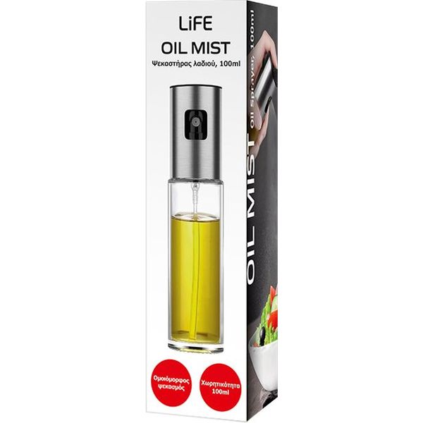 Ο ψεκαστήρας λαδιού LiFE OIL MIST είναι το απαραίτητο αξεσουάρ για κάθε κουζίνα που συνδυάζει υγιεινό μαγείρεμα με πρακτικότητα. Με χωρητικότητα 100ml, προσφέρει ομοιόμορφο ψεκασμό και εξαιρετικό έλεγχο στην ποσότητα του λαδιού, αποτρέποντας τη σπατάλη και μειώνοντας τα λιπαρά στο φαγητό σας. Ιδανικός για χρήση σε air fryer, barbeque, σαλάτες και κάθε είδους μαγειρική δημιουργία, επιτρέπει να απολαμβάνετε γεύσεις γεμάτες χωρίς περιττό λάδι. Το γυάλινο δοχείο του είναι ανθεκτικό, πλένεται εύκολα στο πλυντήριο πιάτων και είναι απόλυτα ασφαλές για τρόφιμα, χωρίς BPA και PFAS. Ο κομψός σχεδιασμός με ανοξείδωτο ατσάλι προσθέτει μοντέρνα αισθητική στην κουζίνα, ενώ η πρακτικότητα του το καθιστά ιδανικό εργαλείο για καθημερινή χρήση. - Χωρητικότητα: 100ml