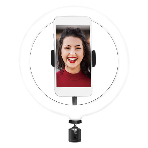 Το φωτιστικό LED δαχτυλίδι Logilink, διαθέτει ρυθμιζόμενη θερμοκρασία χρώματος και φωτεινότητας. Εξοπλισμένο με βραχίονα και μεταλλική κεφαλή 360°, για να μπορείτε εύκολα να περιστρέψετε το τηλέφωνό σας και να τραβήξετε από την καλύτερη γωνία για βέλτιστο φωτισμό. Τοποθετήστε το όπου θέλετε – χωράει σε οποιοδήποτε βιδωτό τρίποδο 1/4 ιντσών. Ιδανικό για βιντεοκλήσεις, vloggers και καλλιτέχνες μακιγιάζ.