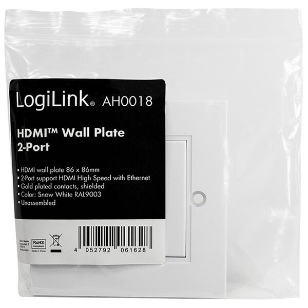 > > > LOGILINK AH0018 HDMI WALL PLATE WITH 2X HDMI-A COUPLER 2X FEMALE WHITE