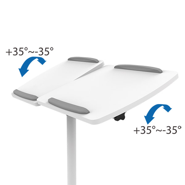 Αυτό το ρυθμιζόμενο σε ύψος τραπεζάκι Logilink είναι μια πολύ ευέλικτη μονάδα με χωριστή επιφάνεια για φορητό υπολογιστή, προβολέα, φορτιστή, ποντίκι και άλλα. Και οι δύο επιφάνειες μπορούν να έχουν κλίση 35° προς τα πάνω και 35° προς τα κάτω για βελτιστοποίηση της γωνίας πληκτρολόγησης, ενώ οι ανυψωμένες άκρες εμποδίζουν τη συσκευή σας να γλιστράει. Ο κινητός σχεδιασμός με τέσσερις τροχούς 2" προσφέρει επιπλέον σταθερότητα. Διατίθεται για σχεδόν οποιαδήποτε μάρκα και τύπο. Είναι ιδανικό για συνεδριακό κέντρο, ξενοδοχείο, αίθουσα συσκέψεων, αίθουσα διδασκαλίας και εκθεσιακό χώρο.