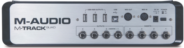 Προσθέστε ένα επαγγελματικό πλεονέκτημα στο στούντιο σας με το M-Track Quad από την M-Audio. Τέσσερις ευέλικτες είσοδοι μπορούν να φιλοξενήσουν οποιαδήποτε πηγή, από phantom power μικρόφωνα μέχρι την αγαπημένη σας κιθάρα. Επιπλέον, κάθε είσοδος είναι εξοπλισμένη με τη δική της υποδοχή εισόδου για την ενσωμάτωση των αγαπημένων σας εφέ. Το M-Track Quad παρέχει παρακολούθηση μηδενικής καθυστέρησης του σήματος εισόδου για εύκολη εγγραφή. Τέσσερις έξοδοι προσφέρουν ευέλικτες επιλογές αναπαραγωγής. Ο μπροστινός πίνακας προσφέρει επίσης έξοδο ακουστικών με αποκλειστικό έλεγχο στάθμης. Εκτός από την εξαιρετική απόδοση του ήχου, το M-Track Quad διαθέτει υποδοχές εισόδου και εξόδου MIDI. Το M-Track Quad συνδέεται στον υπολογιστή σας μέσω USB και επίσης λειτουργεί ως hub με τρεις πρόσθετες θύρες USB. Ψηφιακή επεξεργασία ήχου: 24-bit / 96 kHz (max.).Είσοδος: 4 XLR+1/4" combo input.Phantom power: Ναι.Είσοδοι TRS 1/4: 4.MIDI In/Out jacks: 1/4" balanced outs (1 & 2) with dedicated level control, 1/4" balanced outs (3 & 4) with fixed level.Monitor switch: Stereo/Mono.Έξοδος ακουστικών: Ναι.USB: USB hub με 3 υποδοχές.Διαστάσεις: 333 mm x 89 mm x 156 mm.Τροφοδοσία: Τροφοδοσία AC adapter (περιλαμβάνεται).Συμβατά λειτουργικά: Windows 7 Home Premium, Professional, Ultimate (Service Pack 1), Windows 8, Windows 8 Pro, or Windows 10, Mac OS X 10.7.5 (Lion) or 10.8 (Mountain Lion).Εγγύηση: 2 χρόνια. DOA 7 ημερών