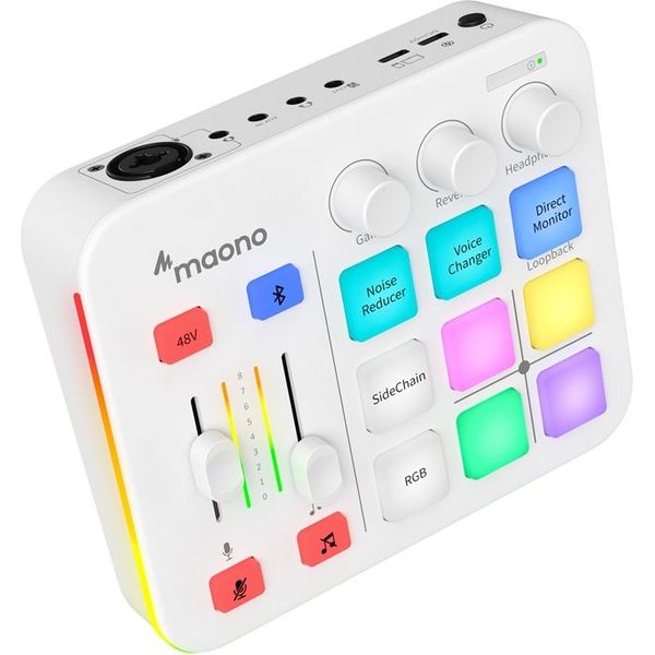 MAONO στην κατηγορία ΕΠΑΓΓΕΛΜΑΤΙΚΟΣ ΗΧΟΣ Η κάρτα ήχου MAONO G1 NEO είναι μια εξωτερική επαγγελματική sound card / audio interface ιδανική για streaming, gaming, podcasting και ηχογραφήσεις, προσφέροντας καθαρό και πλούσιο ήχο με εύκολη χρήση. Διαθέτει σύνδεση USB για άμεση λειτουργία plug & play, πολλαπλές εισόδους/εξόδους για μικρόφωνο και ακουστικά, καθώς και εντυπωσιακό RGB φωτισμό που ταιριάζει σε κάθε setup. Η ενσωματωμένη τεχνολογία και οι ρυθμίσεις τόνου επιτρέπουν λεπτομερή έλεγχο ήχου για επαγγελματικά αποτελέσματα σε κάθε χρήση.
