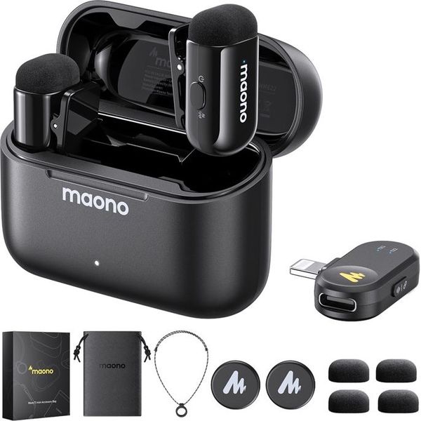 MAONO στην κατηγορία ΜΙΚΡΟΦΩΝΑ Το MAONO WM622 PB2 είναι ένα ultra-compact ασύρματο lavalier μικρόφωνο σε μαύρο χρώμα με Lightning receiver, σχεδιασμένο για vloggers, content creators, interviewers και mobile videographers με iPhone/iPad. Προσφέρει studio-quality ήχο 48kHz/16bit, προηγμένη AI ακύρωση θορύβου, σταθερή μετάδοση έως 100m (328ft) και εκτεταμένη αυτονομία έως 30 ώρες με θήκη φόρτισης, ιδανικό για video recording, YouTube, TikTok, interviews και live streaming με plug-and-play ευκολία.