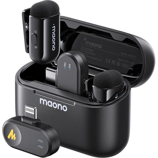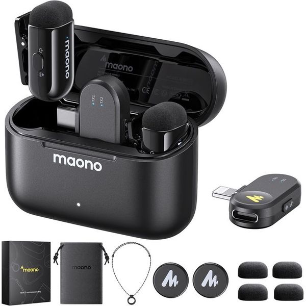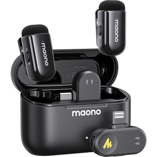 MAONO στην κατηγορία ΜΙΚΡΟΦΩΝΑ Το MAONO WM622 PBC2 είναι ένα ultra-compact ασύρματο lavalier μικρόφωνο σε μαύρο χρώμα με dual receivers (USB-C & Lightning), σχεδιασμένο για vloggers, content creators, interviewers και mobile videographers. Προσφέρει studio-quality ήχο 48kHz/16bit, προηγμένη AI ακύρωση θορύβου, σταθερή μετάδοση έως 100m (328ft) και εκτεταμένη αυτονομία έως 30 ώρες με θήκη φόρτισης, ιδανικό για video recording, YouTube, TikTok, interviews και live streaming με plug-and-play ευκολία.