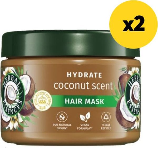 Herbal Essences Hydrate Coconut Scent Hair Mask 250ml Η Herbal Essences Hydrate Coconut Scent Hair Mask 250ml είναι η ιδανική μάσκα για ενυδάτωση και αναζωογόνηση των ξηρών και ταλαιπωρημένων μαλλιών. Η σύνθεσή της με εκχύλισμα καρύδας προσφέρει πλούσια φροντίδα, θρέφοντας τα μαλλιά σε βάθος και επαναφέροντας την υγιή τους εμφάνιση. Αφήνει τα μαλλιά απαλά, λεία και γεμάτα φυσική λάμψη, με υπέροχο άρωμα καρύδας που διαρκεί. Ιδανική για χρήση 1-2 φορές την εβδομάδα για εντατική φροντίδα. - Εντατική Ενυδάτωση: Προσφέρει πλούσια ενυδάτωση στα μαλλιά, αφήνοντάς τα απαλά και λαμπερά.