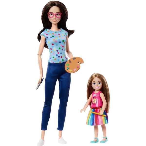 Με το σετ παιχνιδιού Barbie & Chelsea Δασκάλα Καλλιτεχνικών τα παιδιά μπορούν να εμπνευστούν αμέτρητα παιχνίδια! Το σετ περιλαμβάνει, Κούκλα Barbie Δασκάλα Καλλιτεχνικών, Κούκλα Chelsea με περιστρεφόμενη φατσούλα για έκφραση συναισθημάτων και 10 αξεσουάρ συμπεριλαμβανομένων αξιολάτρευτο γατάκι, υλικά ζωγραφικής και αυτοκόλλητα έκφρασης συναισθημάτων.