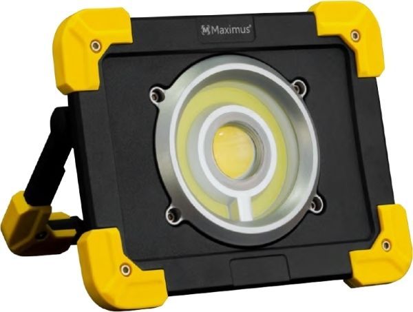 Φορητός Προβολέας Εργασίας LED απο την Maximus. Επαναφορτιζόμενος mε USB και δυνατότητα Powerbank με μπαταρία λιθίου για φόρτηση συσκευών. Με κατανάλωση 20W και απόδοση 1800lm με στεγανώτητα IP65.